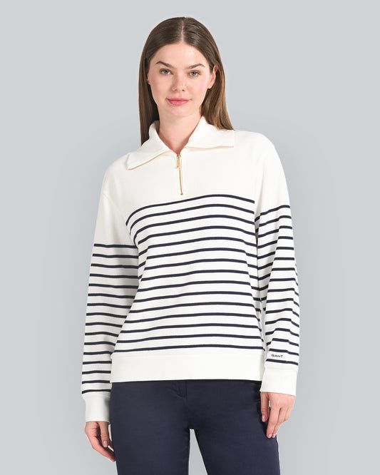 Striped Gold Buttoned Crew Neck Sweatshirt