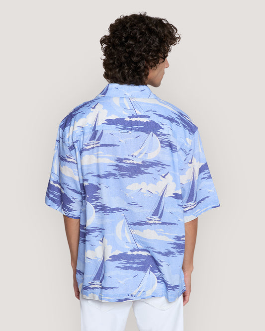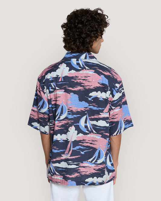 Relaxed Fit Sailing Scene Short Sleeve Shirt