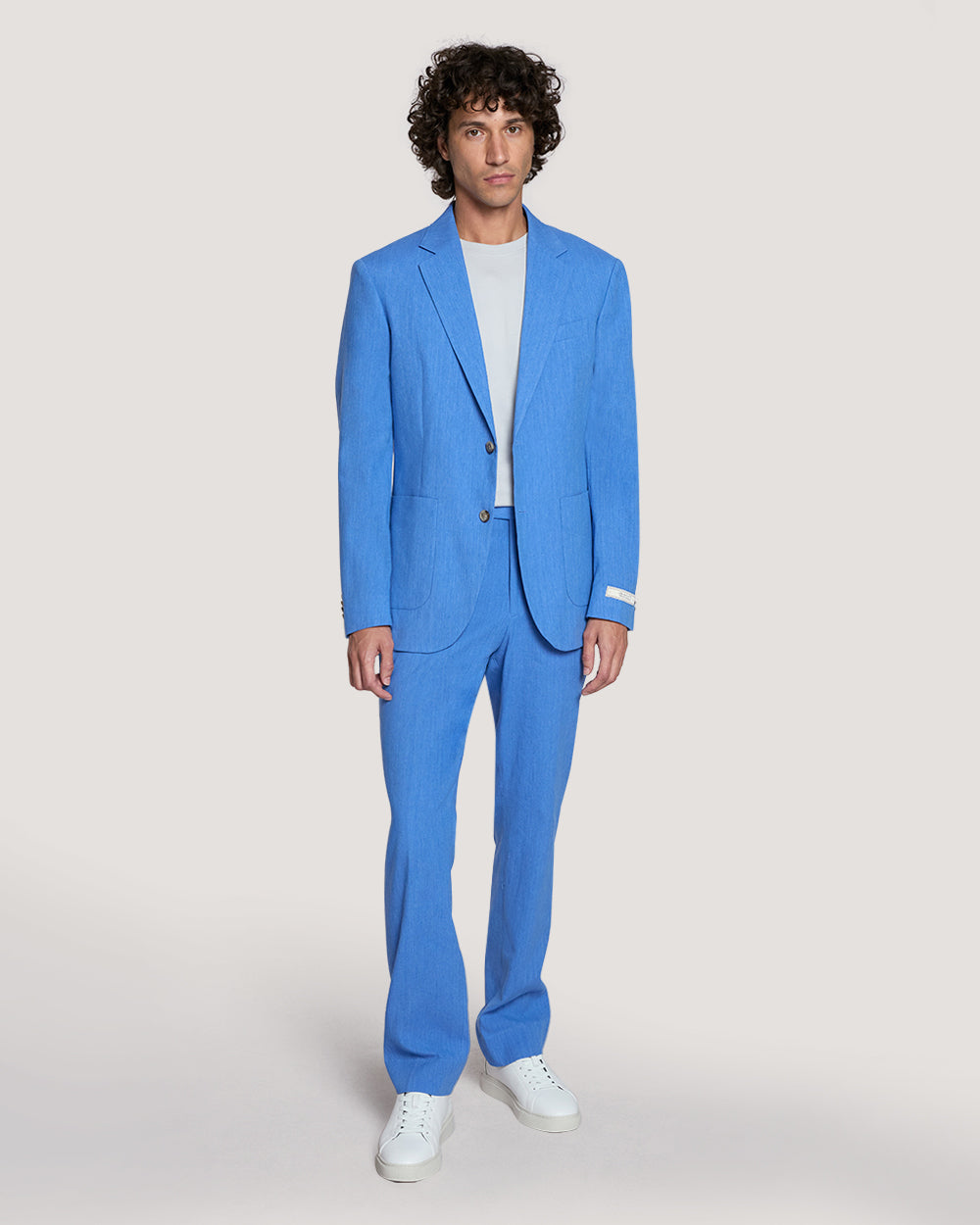 This suit jacket is cut for a slim fit and finishes right below the hips for a flattering silhouette. Crafted from a comfortable Italian cotton-linen blend, the single breasted design features two-button closure, two patch pockets at the front and bio horn buttons for premium detailing.