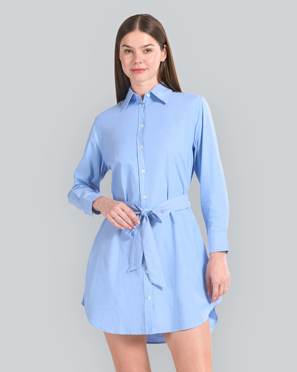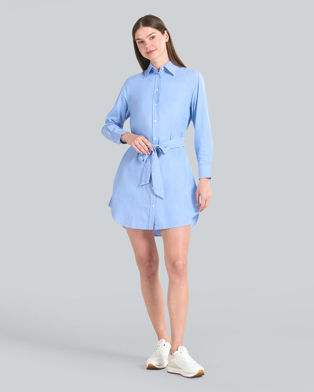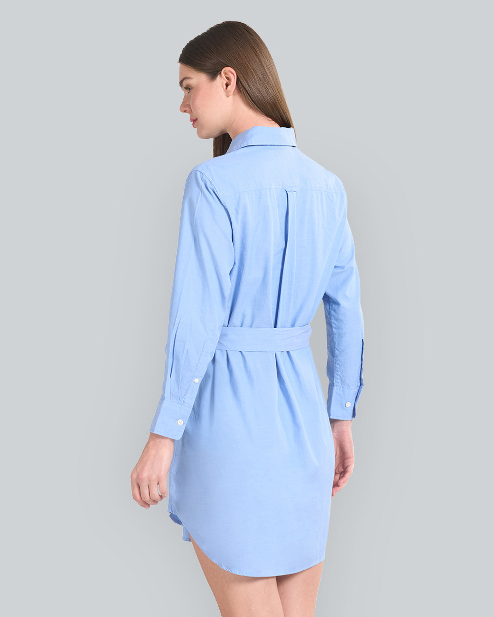 Crafted from washed Oxford cotton with a soft hand-feel, this shirt dress is designed with a relaxed fit and a flattering length that finishes right above the knees. Designed with a classic point collar, the dress is complete with a fully buttoned placket, adjustable cuffs, a belted waist and a curved hemline. This garment is intended for a relaxed fit. For a closer fit, we recommend sizing down.